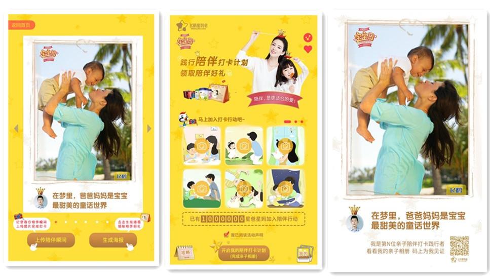 今年是飛鶴倡議“5.28中國(guó)寶寶日”的第二年,飛鶴從陪伴號(hào)召升級(jí)為陪伴指引,打造更適合的陪伴范本。通過(guò)H5互動(dòng),線上+線下有機(jī)聯(lián)動(dòng),發(fā)起了全民陪伴行動(dòng):線上陪伴習(xí)慣養(yǎng)成打卡。引導(dǎo)寶爸寶媽每天上傳自己陪伴寶寶的瞬間,即刻生成專屬海報(bào),不僅可以在社交網(wǎng)絡(luò)進(jìn)行分享、曬親子照,還可參加抽獎(jiǎng)、邀請(qǐng)好友助力。 7天一個(gè)循環(huán),21天養(yǎng)成陪伴寶寶的好習(xí)慣。
